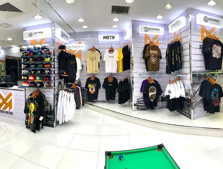 Merch Hub DXB is conveniently located to serve all your branding needs, from custom apparel to uniforms and printing services.